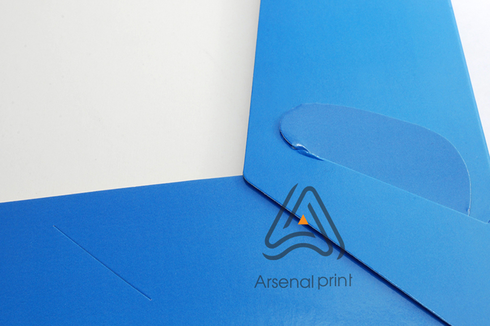 Друк та виготовлення паперових папок являє собою виріб надрукований на цільному аркуші паперу з наступною висічкою по контуру, і за рахунок "висічного замка" папка має можливість збиратися в готовий вигляд